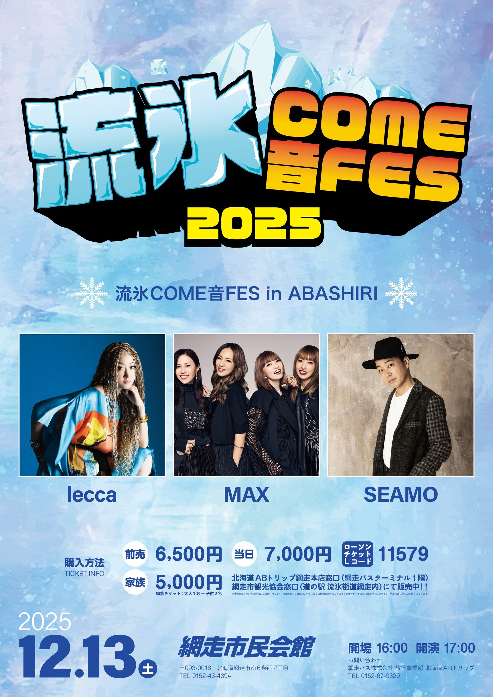 豪華アーティスト3組が登場し、網走の冬が熱くなる!