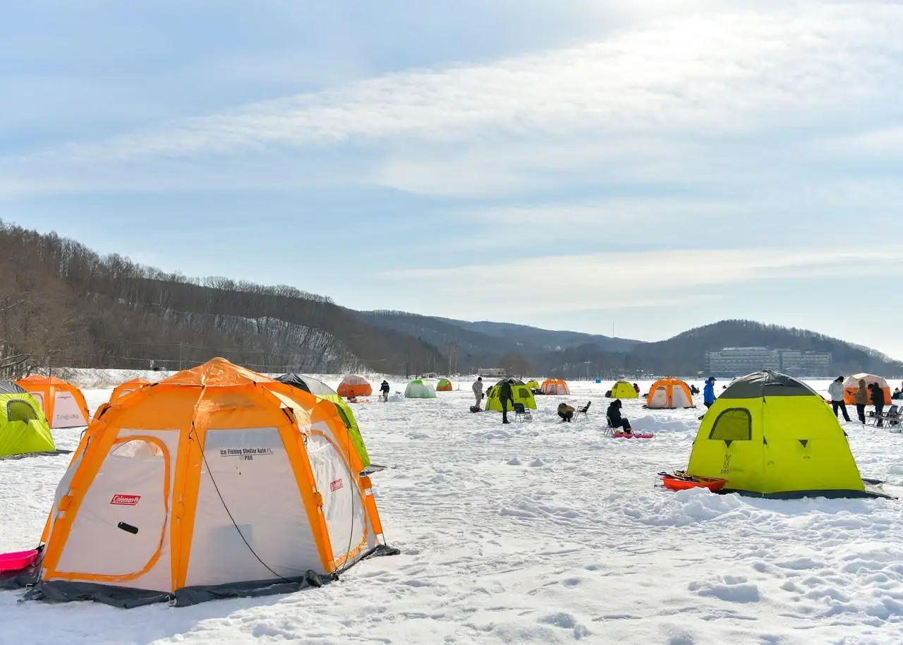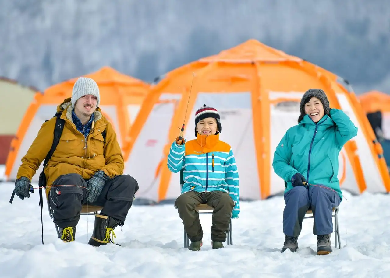 3月中旬まで、網走湖では冬の風物詩であるワカサギ釣りを楽しむことができます。オホーツク海とつながる網走湖は、海で栄養を蓄え湖に戻った10センチ以上の大きなワカサギを狙えるため、人気のワカサギ釣りスポットとなっています。釣り道具のレンタルもあり、手ぶらでお立ち寄りいただけます。