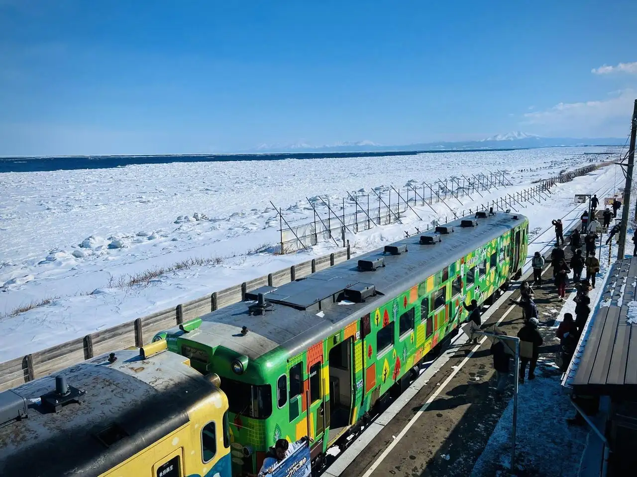 2月1日(土)より、オホーツク海沿岸の絶景を車窓から楽しむことができる「流氷物語号」が運行しています。景色をより楽しんでいただくために一部区間での減速や、下りでは「北浜駅」、上りでは「浜小清水駅」で停車もいたします。