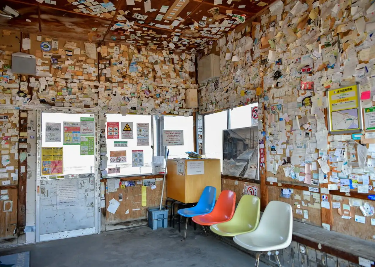 また、駅舎内にはお食事をしながらレトロな雰囲気を楽しむことができる食事処「停車場」や、旅人の名刺などが一面に貼られている驚きの光景を見ることもできます。