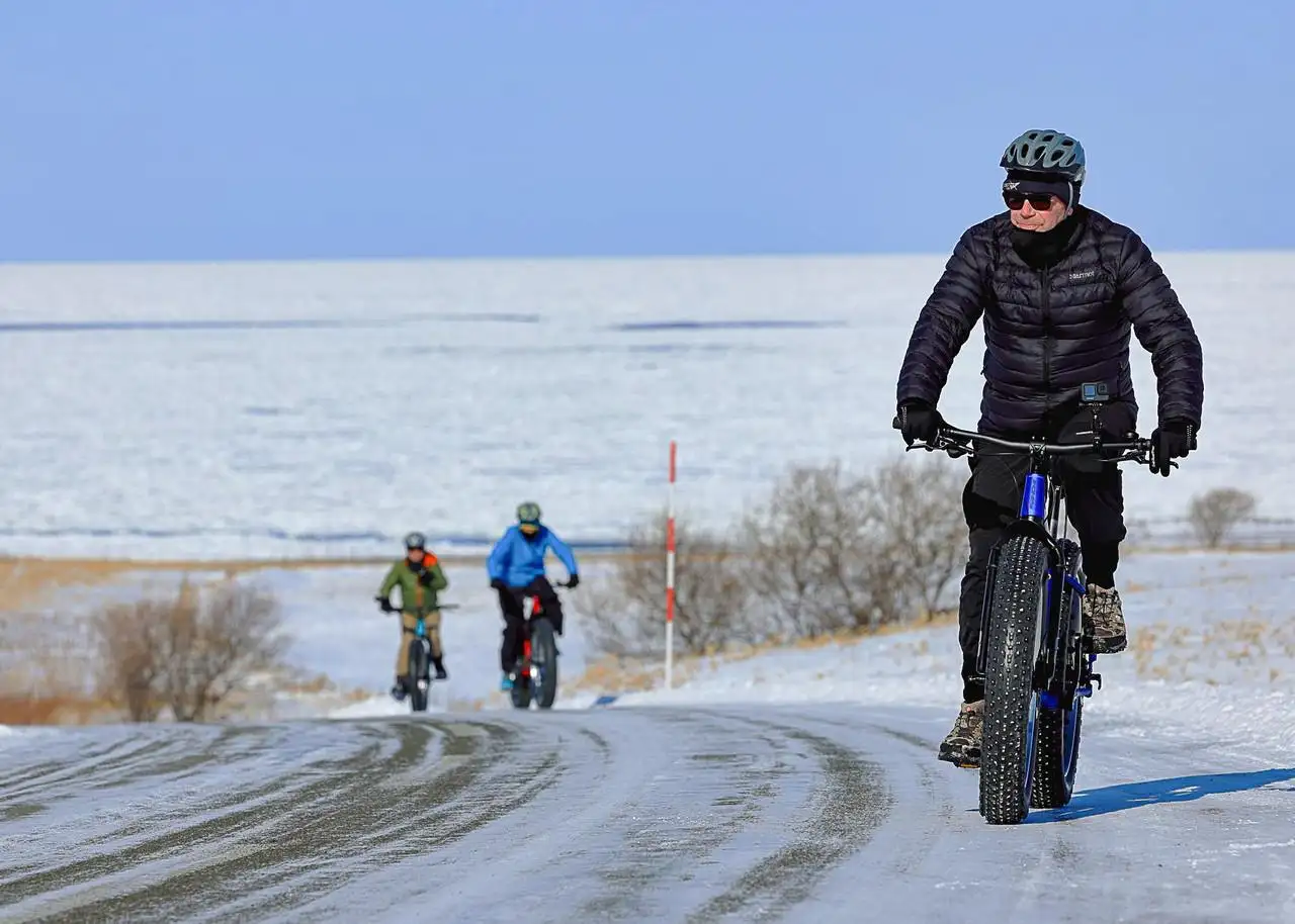 ファットバイクとは、氷上でも滑らずにサイクリングすることができる自転車です。自然の空気、波の音や鳥のさえずり、自然の香りなど、自動車では味わえない自然を楽しむことができます。