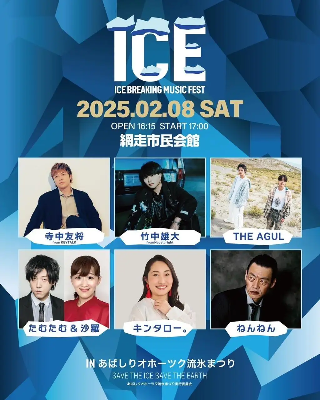 また、2月8日(土)網走市民会館にて「ICE BREAKING MUSIC FEST」が開催され、人気の5人組ロックバンドNovelbrightのボーカルとして活動する竹中雄大やモノマネ芸人のキンタローなど、豪華出演者が会場を盛り上げます。